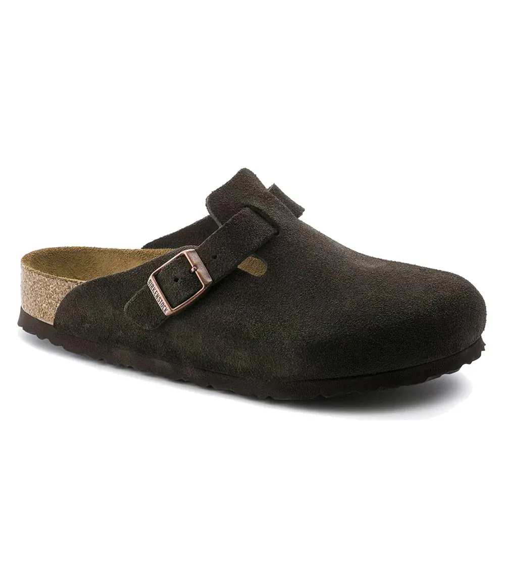 Our [Birkenstock’s] most sought-after clog, the Boston lends a fashion-forward edge to any style. Velvety suede gives the laid-back look classic, every season appeal. Featuring an additional foam layer for cushioning, the soft footbed offers extra comfort plus go-all-day support.