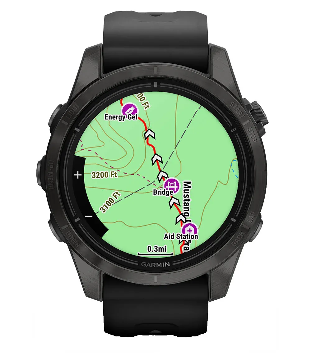 - Rugged by design: The resilient athletic design features a bright 1.4” scratch-resistant sapphire AMOLED display, responsive touchscreen, traditional buttons and 51 mm fiber-reinforced polymer case with a titanium bezel and rear cover. The watch is tested to U.S. military standards for thermal, shock and water resistance.