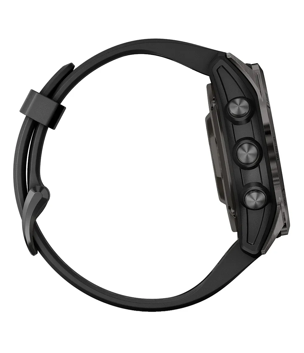 - Rugged by design: The resilient athletic design features a bright 1.4” scratch-resistant sapphire AMOLED display, responsive touchscreen, traditional buttons and 51 mm fiber-reinforced polymer case with a titanium bezel and rear cover. The watch is tested to U.S. military standards for thermal, shock and water resistance.