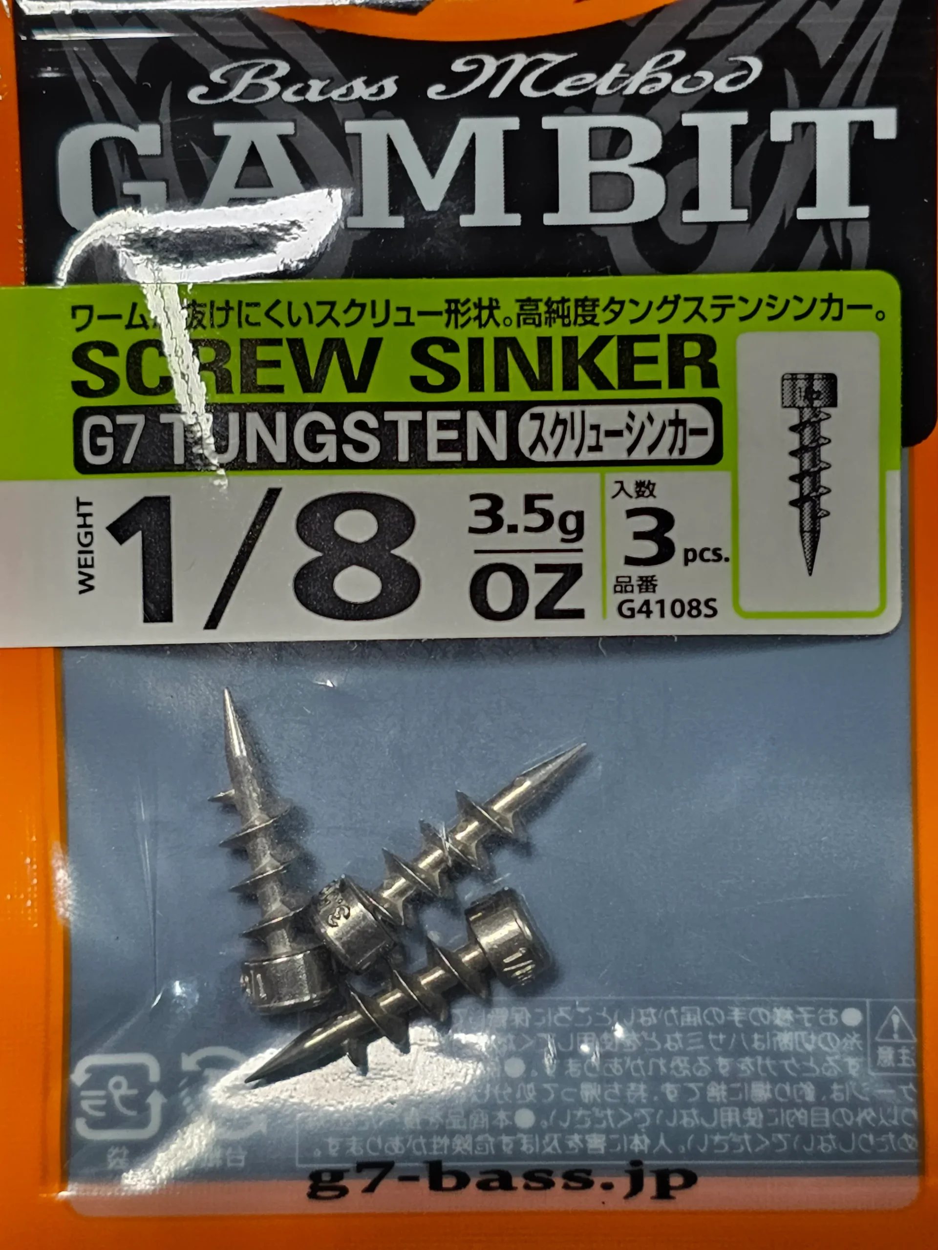 the G7 Tungsten Screw Sinker is a compact nail sinker with a mushroom head that stays exposed when rigged. the Gen2 features larger threads for a firmer grip.