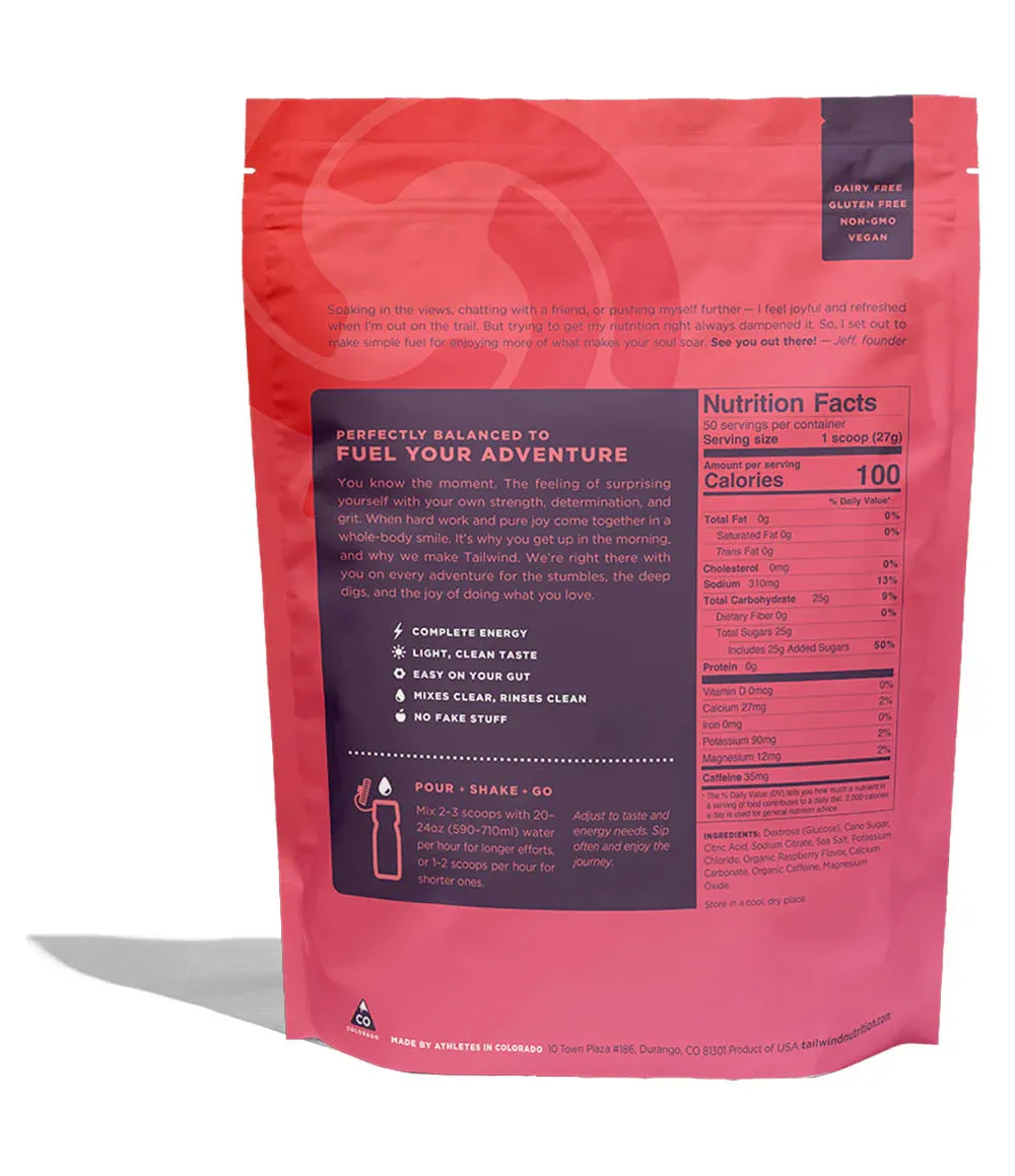 - Complete calories, electrolytes, and hydration: Ditch the gels, chews, and pills, and go all day with just Tailwind.