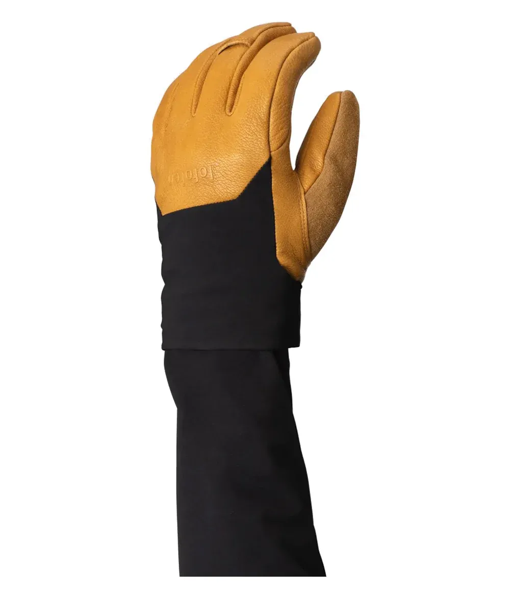 It has a snug fit with pre-curved fingers for extra comfort and ergonomic perfection, and a low cut cuff to work seamlessly with the cuffs of the lofoten jacket. The softshell face fabric has good stretch for comfort and mobility, and the inserted Gore-Tex liner makes it waterproof yet breathable. The inner liner is made soft, recycled polyester that provides moisture transportation and is combined with Pinnecco to ad some extra loft.