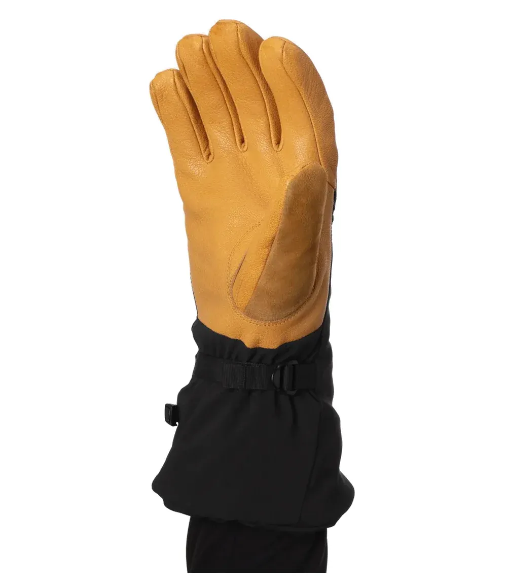 Other features include wrist strap adjustment, elastic hem cord, removable glove leach, small glove loops to make them easy to take on and off, a minimalistic connection hook and a suede wipe area on the thumb. The durable leather is used in the palm and on the back of the hand and has been DWR treatment for extra protection.