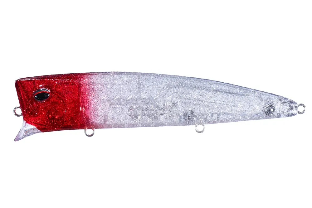 The Moses 145F is a surface-specialized wake bait that is designed to lure the target to the top range and make them bite. In order to exceed the pitch that can be achieved with a general body and weight, the lightweight honeycomb super HP body and the optimized line eye and weight arrangement realize a tight high-pitch roll action. Furthermore, the body shape, which is close to a flat surface that creates a strong reflection with a high body height, flickers and flashes to strongly appeal to the target. It swims with a light pull and creates a wake from the retrieve, from dead slow to medium fast. In addition to pursuing basic performance such as flapping with changes in the current and retrieve speed, giving the target time to bite, it deliberately keeps the surface layer and always wears the water flow while blurring its silhouette, making it easy to bite even in situations where lures are easily seen through, such as day games and clear water. It can also be used like a popper with a rod action. The pop sound and the rattle sound from the built-in large steel ball will attract fish from far away and deep ranges and bring them to bite. The rattle sound and wake make it easy to grasp the retrieval course, which is a big advantage in night games that require a delicate approach. Fish eaters are eager to prey on the bait that has been driven to the surface.
