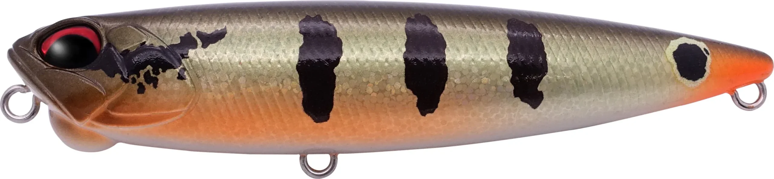 The Realis Pencil sets the standard for walking baits. The carefully designed ballast system gives superior casting distance and superior sound. The Pencil enables you to reach your target in a single cast, initiate walking action and call fish from a distance. New Bone body material creates a two knock rattle sound, while the protruding spherical shape on the shin creates easy “walking the dog” action.