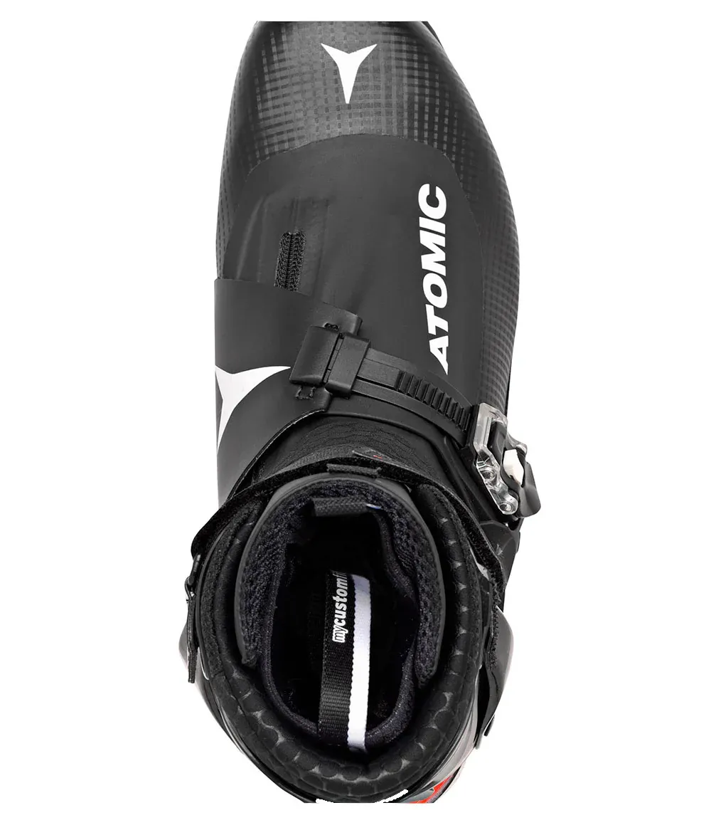 Inspired by the skate boots worn by Atomic world cup pros, Atomic Redster S9 is an out-and-out racer. The genius of this boot is the Custom Fit: heat the liner with a heater and it molds to your foot for a completely personalized fit in minutes. It also comes with an innovative Carbon 3D Chassis with exceptional torsional rigidity. So all your physical strength is directed into your ski for explosive acceleration. The boot features a Prolink outsole, which gives you an exceptional snow feel (and works with all 2-rail bindings including NNN® and Turnamic®). And the Precision Closure System combines ratchet closure, wrapping lace and dissociated Quicklace for a really precise fit and excellent traction.