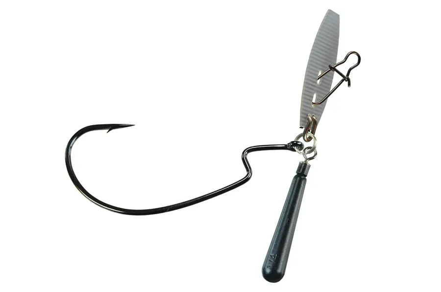 Picasso Tungsten Jika Vibe Ryugi Version – Named after the popular Japanese technique the Tungsten Jika Vibe is a cross between several techniques including the drop shot, wobble head, and Texas Rig, and now has the added benefit of a small circuit board blade that creates vibration to entice a strike. The design of the Tungsten Jika Vibe keeps your plastic bait off the bottom and out of the silt. The free-moving hook creates a live action of the plastic trailer. It can be rigged with any soft plastic trailer including worms, creature baits, lizards, and swimbaits. Being extremely versatile the Tungsten Jika Vibes’ tight action allows it to come right through eel grass and also flipped into heavier grass, fished on the bottom along creek channels, grass lines, ledges, and rocky points. It is also effective pitching into blowdowns and working through brush piles and other submerged cover where the bass typically hide. Try hopping the Jika Vibe along the bottom with slight lifts of the rod or use a steady retrieve to “tick” along thebottom. Equipped with a Japanese made Ryugi long throat hook to hold your plastics without interfering with swing. Larger wide gap hook accommodates larger plastics. Fishing Tip- For the ultimate fish attraction use a permanent marker to customize the color of the circuit board blade based on water clarity and time of year.